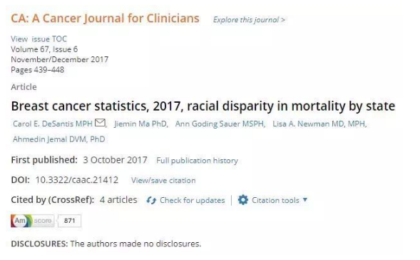 影响因子最高期刊《CA》2017年美国乳腺癌大数据