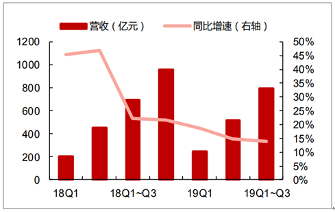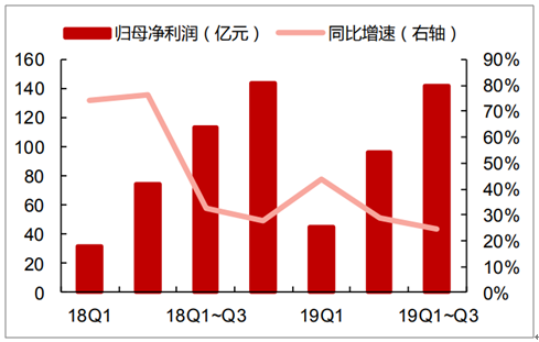 截止2019年前三季度,医疗器械板块2019Q1-3实现营业收入790.96亿元,同比增长14.06%;Q3实现营业收入273.78亿元,同比增长12.71%,增速较前2季度有所下降;利润端2019Q1-Q3医疗器械企业总体归母净利润为141.64亿元,同比增长16.15%,与2019H1相比增速同样略有下降,整体上医疗器械企业利润增速处于略微放缓趋势。该板块内部分化明显,IVD传统生化诊断、低值耗材市场成熟,增速缓慢;创新型医疗器械企业,包括部分高值耗材、化学发光企业保持较高增长。
