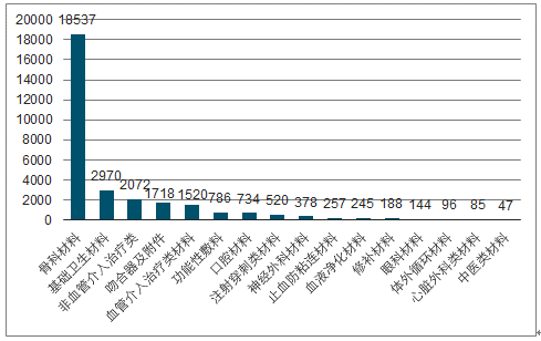 国家医保局于2019年12月2日发布《关于公示医保医用耗材分类与代码数据库第一批医用耗材信息的通知》,共计30332条目录、893.275万个规格型号,形成了17个一级分类(学科、品类)、176个二级分类(用途、品目)、1073个三级分类(部位、功能、品种),包括骨科类材料、血管介入治疗类材料、非血管介入治疗类材料、神经外科材料等,其中骨科材料的数量最多,高达18537种。