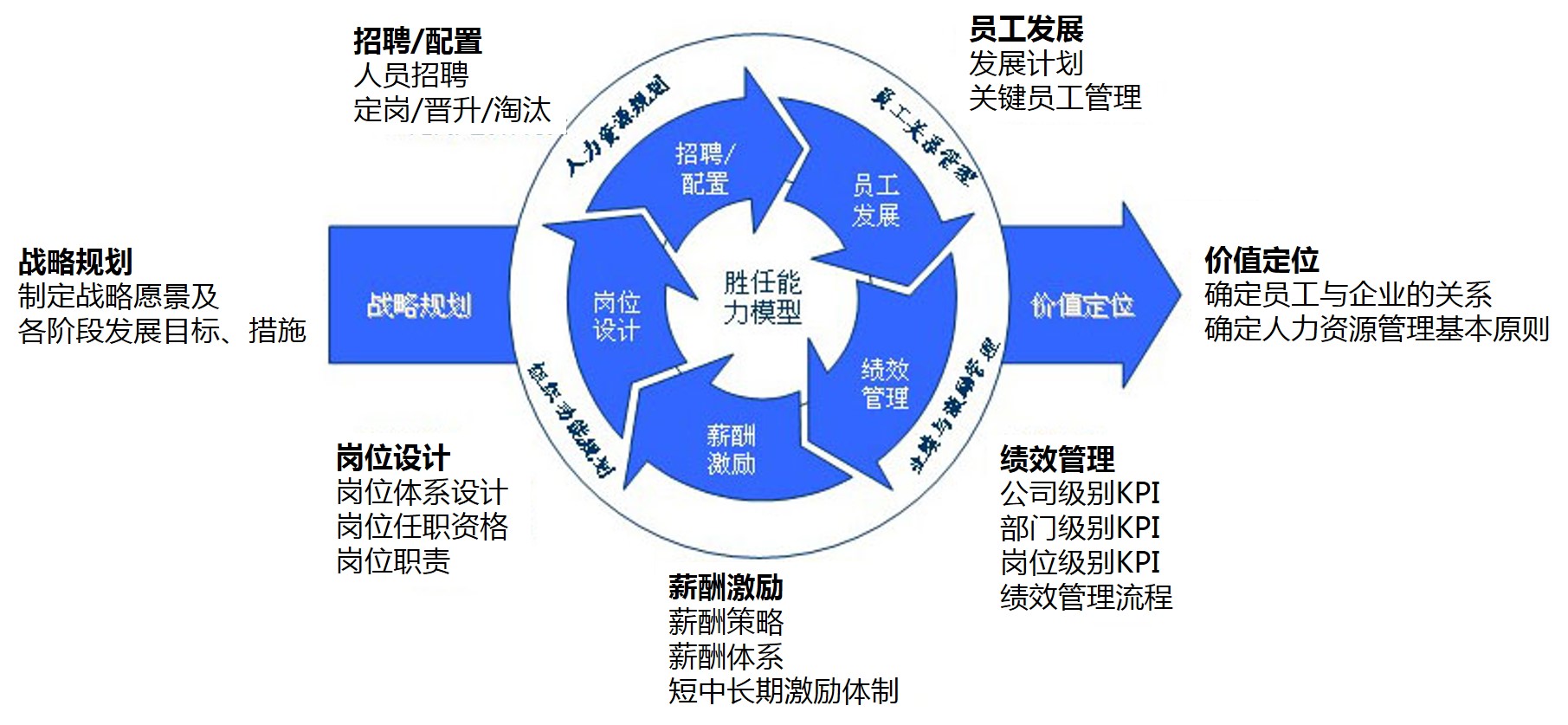 总之,人力资源部应从战略规划、招聘、配置、员工发展、绩效管理、薪酬激励、岗位设计等多角度全方位强化基础管理。如下图所示: