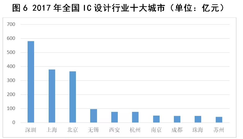 IC设计中低端(市场)进入门槛较低,是国内城市集成电路竞争最激烈的领域。但由于严重依赖高素质专业人才,整体IC设计产业高度集聚,且“头部”企业现象明显。2018年,在全国IC设计十大企业中,深圳有4家,且华为海思和豪威科技分列第1、3位,收入占比(Top10)高达62%;其余IC设计企业主要集中在北京和上海。