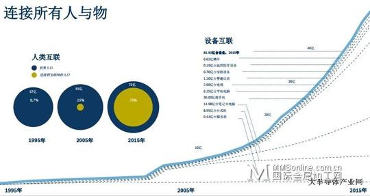 从图表上我们可以看到,联网设备将呈现几何倍数增长,因此物联网浪潮不可阻挡。在2016年上海慕尼黑电子展BoschSensortec新品发布会上,BoschSensortec亚太区总裁百里博先生表示:“在过去这几年可以看到,智能手机出货量大幅成长。但是未来,我相信可穿戴设备市场将大幅成长,这将给传感器市场带来崭新的机遇。”