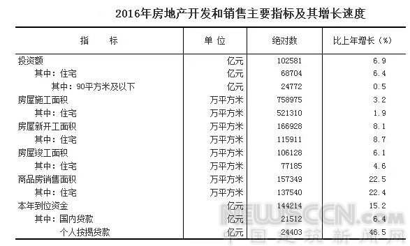 全年房地产开发投资102581亿元,比上年增长6.9%。其中,住宅投资68704亿元,增长6.4%;办公楼投资6533亿元,增长5.2%;商业营业用房投资15838亿元,增长8.4%。