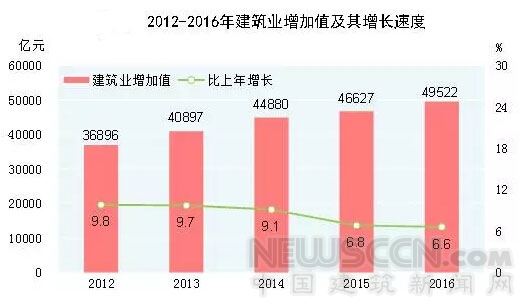 全年全社会建筑业增加值49522亿元,比上年增长6.6%。全国具有资质等级的总承包和专业承包建筑业企业实现利润6745亿元,增长4.6%。
