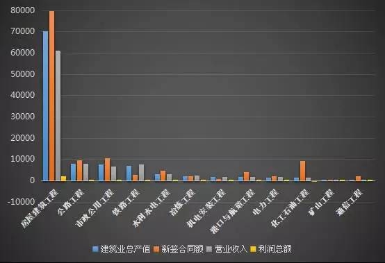 房建、公路、市政公用、铁路工程四大专业类别在建筑总产值、营业收入、利润总额三项指标上稳居前四,且占全部比重达85%以上,不过从新签合同额上指标上看,铁路工程相对落后。