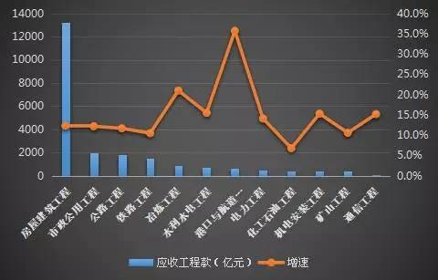 在2015年的发展公报中还尚可说“企业应收工程款增速仍然较高”,2016年则直接用“问题严重”四个字来形容,在住建部统计的各类特、一级施工总承包企业中,2016年所有12个专业类别的应收工程款均持续增加,其中11个专业类别的应收工程款增速均超过10%,港口与航道工程类企业的应收工程款增速更是达到35.7%。