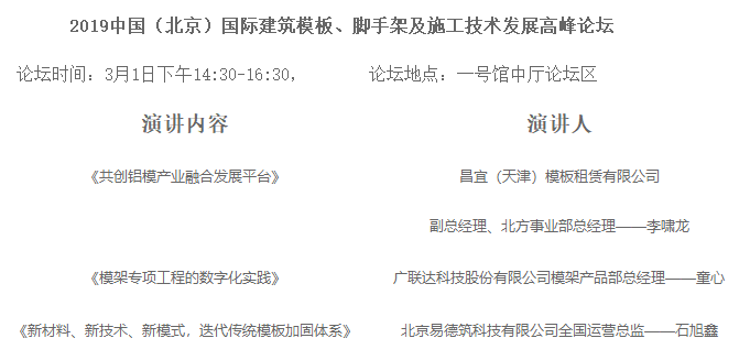 模板、脚手架及施工技术发展高峰论坛,具体议程如下: