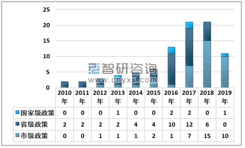2010-2019年全国各级政策关于全装修政策出台数量情况