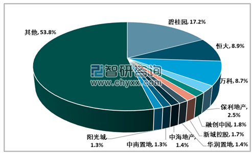 我国全装修市场行业集中度较高,碧桂园、恒大、万科占国内全装修地产企业市场份额分别为17.2%、8.9%和8.7%,全装修市场地产企业CR8占比43.6%,处于寡头型市场。