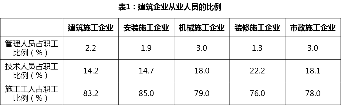 1、建筑行业从业人员的构成分析