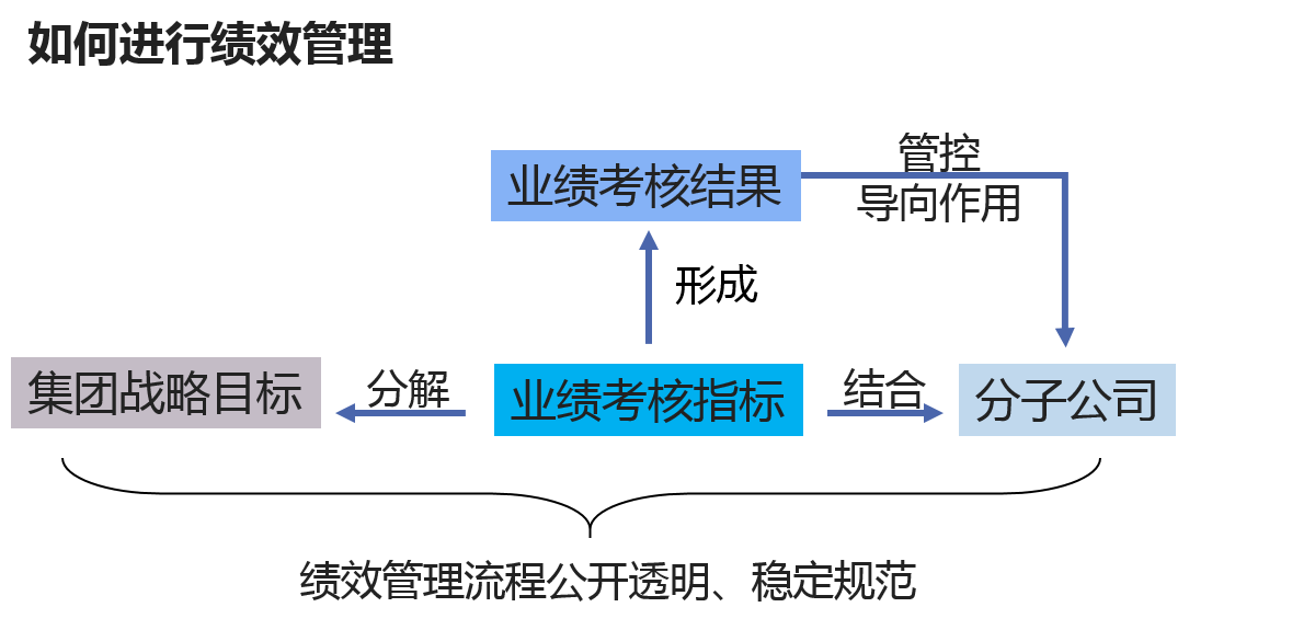 3.根据集团战略目标,联系各分子公司的实际情况,进行绩效管理。