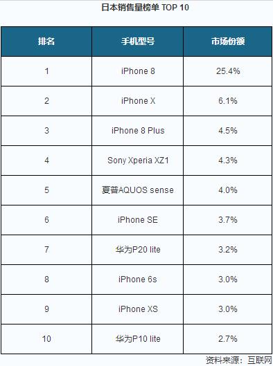 该次榜单中,iPhone在销售的10大榜单中横扫了6个席次,除了占据前三甲,还有iPhone SE、iPhone 6s、iPhone XS,分列第六、第八、第九,日本民众对iPhone的喜爱可见一斑。此外,来自中国的华为夺下2个席次,分别是第七名的华为P20 lite和第十名的华为P10 lite。