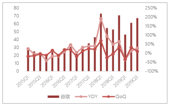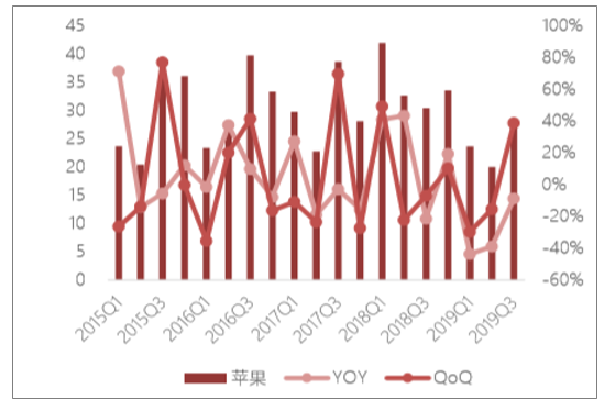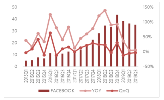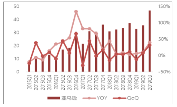 亚马逊2019年Q3资本开支同比环比增速大幅提升,谷歌同比增速大幅增加,苹果环比增速大增,facebook同比环比略有改善。亚马逊Q1、Q2、Q3同比增速分别为6.2%、9.8%、40.1%,环比增速分别为-11.9%、8.3%、31.9%,亚马逊同比环比增速在Q3实现了大幅增长;谷歌Q1、Q2、Q3同比增速分别为-36.5%、11.8%、27.5%,环比增速分别为-34.5%、32.1%、9.9%,谷歌同比增速在Q3实现较大提升;苹果Q1、Q2、Q3同比增速分别为-43.7%、-38.8%、-8.7%,环比增速分别为-29.6%、-15.4%、38.8%,苹果同比增速在Q3改善显著,环比增速实现较大提升;facebookQ1、Q2、Q3同比增速分别为36.5%、5.0%、5.7%,环比增速分别为-12.1%、-5.3%、-2.8%,facebook同比环比增速在Q3均实现一定程度改善。