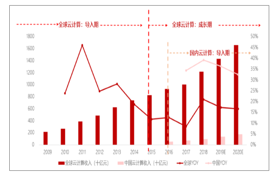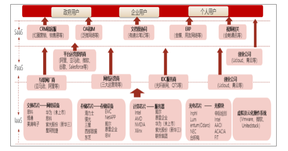 进入4G后周期(2018-2019年),随着视频、直播等大流量应用的逐渐成熟,云计算的需求也略有下滑,参照韩国5G商用后,流量呈数倍增长,预计在5G新应用带动的流量增长下,云计算产业链增速有望持续提升。