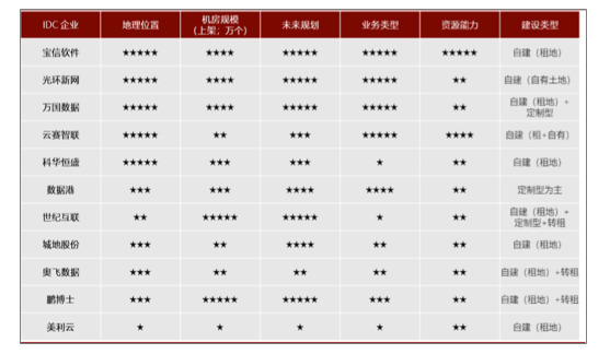 市场上优质的IDC企业主要分为自建型和定制型两种,自建型IDC卡位核心地段,盈利能力强劲,定制型IDC主要帮互联网企业代建IDC,有望分享互联网企业高成长红利。除了云计算客户,主要金融客户、政企客户、大型互联网企业等大部分集中在一线城市及周边,云计算造成客户结构转变,使得我国IDC市场呈结构性过剩状态。随着大批企业上云,二、三线城市IDC企业客户流失率提升,云计算企业出于成本(地多且便宜、电便宜、能耗指标丰富等)和安全等的考虑,在二三线城市倾向于自建数据中心(找定制型IDC企业代建),传统IDC企业逐渐倒闭或转型为定制化代建IDC企业;一线城市具备客户多、网络好、人才多等优势,但从供给端来看,政策严、供给少,IDC稀缺性价值加剧,企业议价和盈利能力不断增强,卡位一线城市及周边的自建型IDC企业盈利能力强劲。