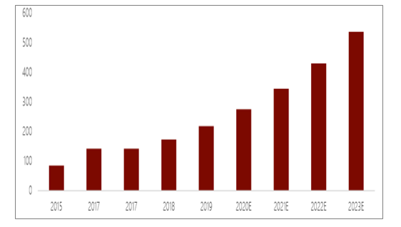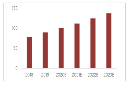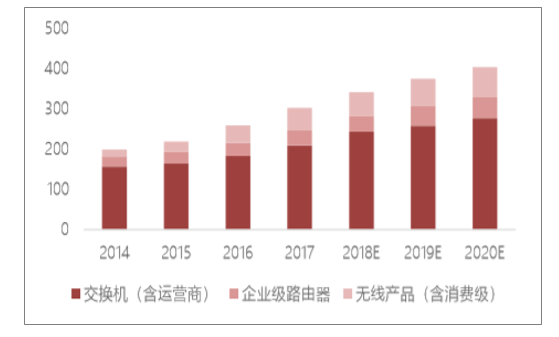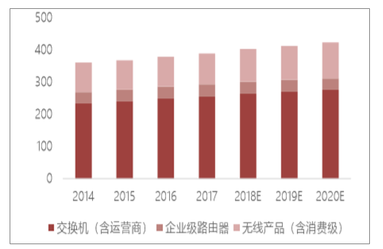 2014-2020年我国企业网络设备市场规模(亿美元)