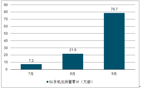 中国5G手机出货量累计值为78.7万部;2019年6月、7月、8月、9月上市5G新机型分别为1款、4款、4款、9款。随着5G基站的进一步建设以及5G配套应用的不断发展,近2-3年将会出现5G手机的换机潮,5G手机的出货量将大幅跃进。