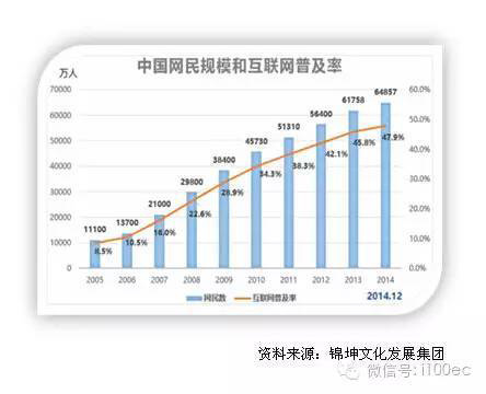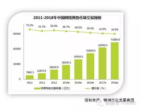 同时,中国网络购物在2014年的增长率也首次跌破50%,为48.7%。