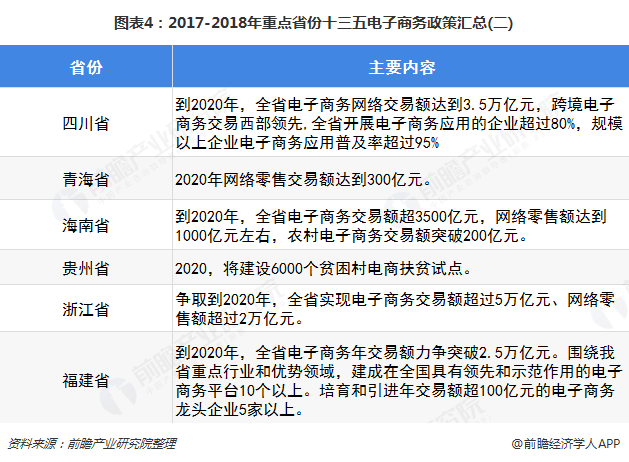 在国家整体相关政策的带动下,各个省市出台了适合本地经济、互联网环境的相关政策,为各省市的电子商务产业发展指明方向。十三五期间,各省出台了在此期间发展电子商务的具体政策,政策中明确指出了各省到2020年的重点发展目标。