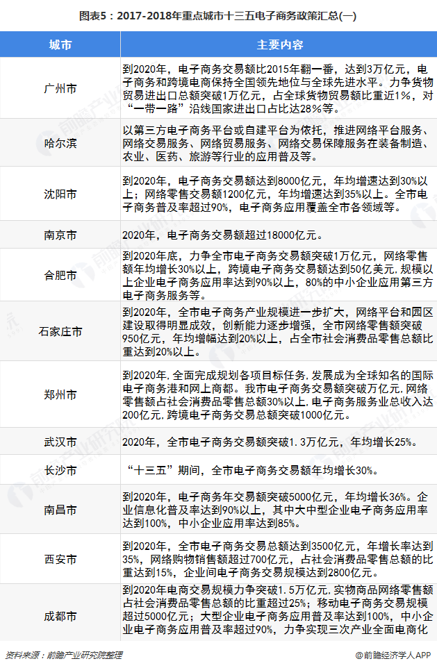 截止2018年重点城市电子商务政策汇总