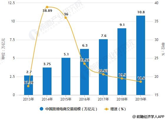 预测2019年中国跨境电商交易规模将突破10万亿