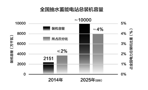 据国家能源局提供的数据显示,截至2015年底,全国抽蓄电站总装机约为2300万千瓦,与水电“十二五”规划的3000万千瓦目标相比,完成率仅为77%,而且“十二五”期间抽蓄新开工规模为2090万千瓦,仅为规划目标的52%。