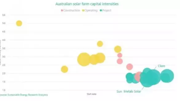 根据笔者最近的观察和很多行业资料中的预计,太阳能项目的单位MW总投似乎很快会减低到120万澳元甚至更低。