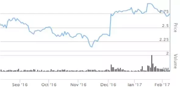2016年底,收购AusGrid落败不久,长江基建向DUET股东发出每股3元,总额73亿澳元的收购要约(unsolicited,可译为“恶意收购”)。Duet当天的股价暴涨近30%,之后一直在2.7 – 2.8每股左右徘徊。该价格已经超过了很多分析师估计的估值区间(每股2.41 – 2.61元)。