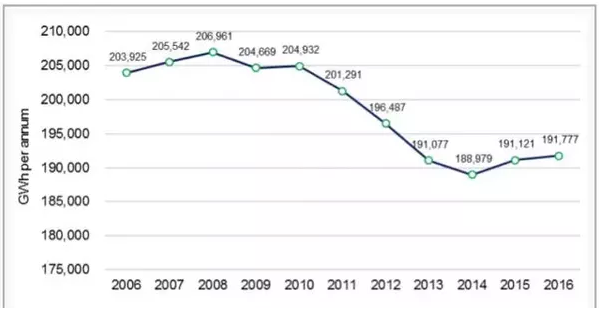 2017年初公布的一些澳大利亚2016年度电力市场数据: