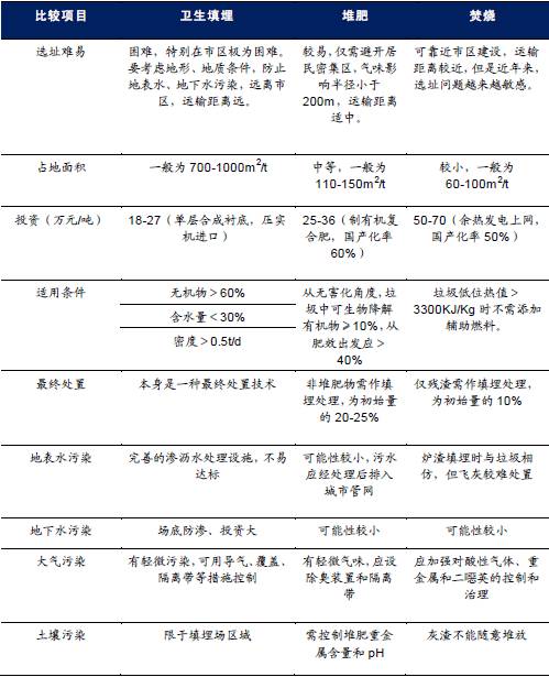 垃圾填埋容易对地下水造成严重污染,且填埋场用地长达几十年无法使用,相比之下焚烧方式更为清洁环保。填埋法的主要问题是占用大量土地同时重复利用率低,旧有填埋场库容达到极限后又需要新建设施,严重耗费大量土地资源。当前我国面临城镇开发以及人口压力等一系列和土地资源相关的问题,建设垃圾填埋场带来的综合成本高企,不符合社会实际需求。