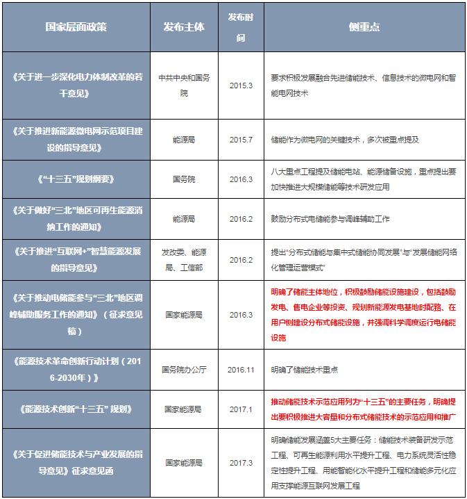 从2015年3月发布的内容到2017年3月,在这两年之内,我们国家对于储能这一块发布的相关文件的描述上来看,分布式储能还有储能的商业化来讲,都是非常支持的,提出来一些比较明确的应用路径和商业路径。