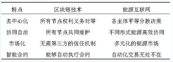 区块链是由区块有序链接起来形成的一种数据结构,其中区块是指数据的集合,相关信息和记录都包括在里面,是形成区块链的基本单元。区块链特殊的数据结构组织形式,使区块链技术具有4个主要特点:去中心化、透明化、合约执行自动化、可追溯性。区块链技术的特点与能源互联网的理念在一定程度上具有相似性,参见表1。