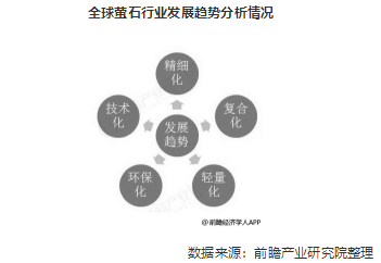 从消费趋势看,萤石在世界钢铁冶炼行业的消费量正日渐下降,而伴随着世界氟化工技术的不断进步,氟化学工业对氢氟酸的需求持续增加,对酸级萤石需求量增加,目前世界萤石产量一半以上用于制取氢氟酸。萤石是不可再生资源,从磷灰石中提取氟是获取氟元素的重要途径之一;向精细化、复合化、轻量化、环保节能循环经济发展及为高新技术服务的应用研究开发将是全球萤石产业未来的发展方向。