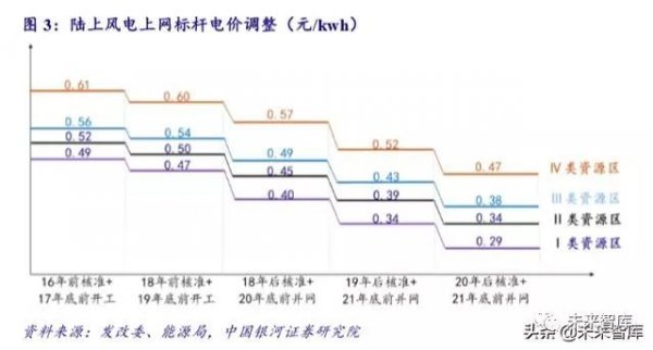 补贴逐步削减,竞价上网来临。2009年风电上网电价标杆化,四类风能资源区分别定为0.51、0.54、0.58、0.61元/kwh。能源发展“十三五”规划提出,风电实行补贴退坡机制,到2020年与煤电上网电价基本相当。为此,近年来国家多次下调风电上网标杆电价。2018年发改委规定2019年后新增核准项目全部通过竞争方式确定上网电价。
