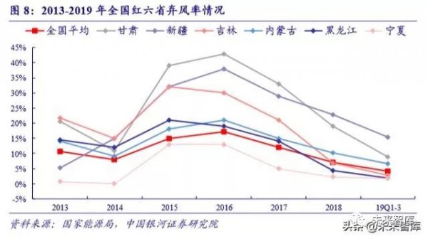 2020年弃风率控制在5%左右。2018年10月,发改委、能源局制定发布《清洁能源消纳行动计划(2018-2020年)》,提出清洁能源消纳行动的工作目标及具体指标:规划到2020年,确保全国平均风电利用率达到国际先进水平(力争达到95%左右),弃风率控制在合理水平(力争控制在5%左右)。