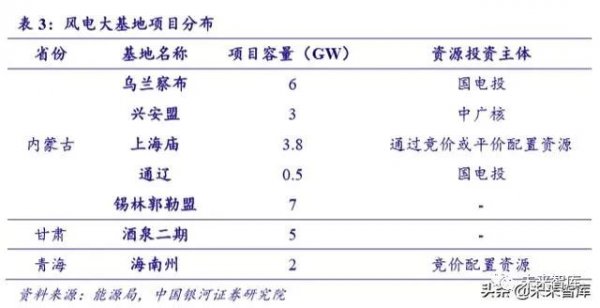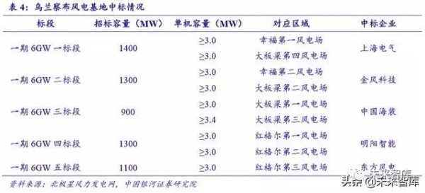 乌兰察布基地开工建设。2019年9月,我国首个大规模风电平价上网示范项目乌兰察布6GW风电大基地进入开工建设阶段。该基地也是目前全球最大单体陆上风电项目,预计2020年开始并网发电。项目中标企业包括上海电气、金风科技、中国海装、明阳智能及东方风电等。