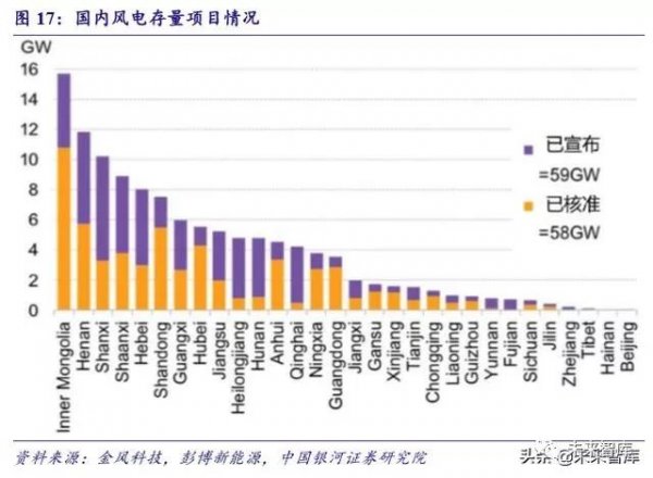 推进基地建设,保障长期发展。国家能源局逐步推进风电基地项目建设,到目前为止已经涉及超过4个省份8个项目,总规模超过25GW。其中,乌兰察布6GW、兴安盟3GW、阿拉善盟区上海庙1.6GW等基地中标结果已出,将逐步开工建设。作为平价上网的示范项目,风电大基地项目将有效保障风电行业平稳过渡至平价阶段,防止抢装结束后装机量断层下跌,有效促进北方地区风电复苏和发展。