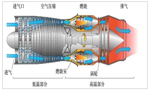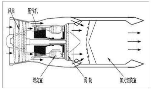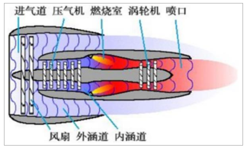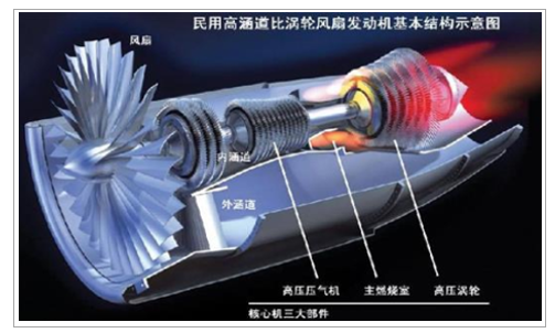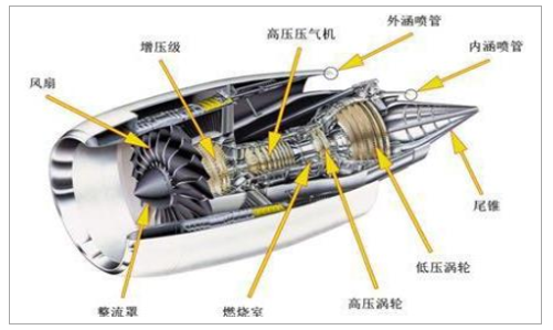民用高涵道比涡轮风扇发动机基本结构示意图