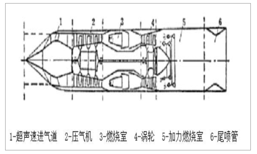 涡轮喷气发动机战后迅速发展:20世纪50年代,加力式涡喷发动机应运而生。二战中涡喷发动机和飞机尚处于试验阶段,并没有发挥很大作用,直到战后特别是20世纪50年代开始迅速发展。战后第一批装备部队使用的喷气式战斗机是1944年美国制造的F-80和1946年苏联制造的米格-9。飞机速度达到声速以后,为了突破“声障”,在涡喷发动机上加装了加力燃烧室,它可以在短时间内提高推力使战斗机继续向高空高速发展。1958年美国推出F-104战斗机,最大飞行马赫数2.2,使用升限17.68km。同时出现动力为J79单转子加力式涡喷发动机,最大推力7020daN,推重比4.63。涡喷发动机在军用战斗机上广泛应用的同时,也被轰炸机、运输机、旅客机和侦察机等相继应用。随后在20世纪50-60年代研制出了加力式涡喷发动机,其性能参数水平为:涡轮前燃气温度950-1100℃,推重比4.5-5.5,不加力耗油率0.9-1.0kg/(daN·h),加力耗油率2.0kg/(daN·h)左右。加力式涡喷发动机的结构不复杂且增加的结构重量不多,却能高效地提高了发动机的推重比。
