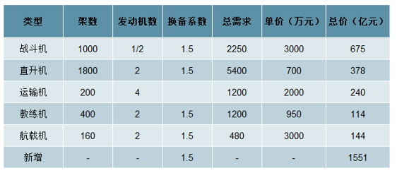 老旧替换及新增需求大,预计未来十年军用航空发动机需求1500亿元:当前,我国军用战机正处于由三代向四代过渡的关键时期,我们认为未来十年年现有绝大部分老旧机型将退役,配备涡扇-10系列发动机的歼-10、歼-16、歼-15将成为空中装备主力,运-20、直-20、歼-20、歼-31也将有一定规模列装,轰炸机、预警机及无人机等军机也会发生较大幅度的数量增长及更新换代,这将为发动机带来强劲的需求。未来10年内,中国军方飞机可能需要超过10000台各类发动机,发动机总需求或可达1500亿元。