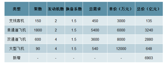 单通道喷气客机将是民航市场主要机型,未来十年民用发动机需求可达5000亿元:近十年来,中国运输行业持续高速增长,特别是航空运输,占交通运输业比重越来越大;旅客周转量年均增长率为12.7%,远高于其他交通运输方式。为适应航空运输业的快速增长,中国客机机队规模(包含港澳台地区)不断扩大。截至2017年底,中国客机机队规模达到3522架(包含港澳台地区),其中,涡扇支线客机47架,单通道喷气客机2852架,双通道喷气客机623架。过去十年,中国客机机队一直保持增长趋势。近四年,出于多种因素的考虑,航空公司更倾向于选择大座级的支线客机,50座级的支线客机大量退役,转由90座级涡扇支线客机填补市场需求。未来二十年,预计中国机队年均增长率为5.3%,旅客周转量年均增长率为6.5%,预计中国将交付9008架客机。至2037年,中国的旅客周转量将达到3.9万亿公里,占全球的21%。到2037年,中国机队规模将达到9965架,其中单通道喷气客机6656架,双通道喷气客机2343架,喷气支线客机966架。预计未来十年民用发动机需求可达5000亿元左右。