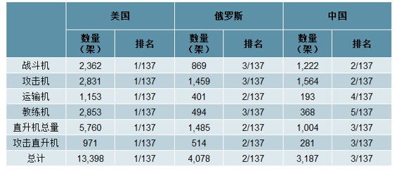 我国未来军用航空发动机市场前景广阔:目前中国人民解放军空军是本地区最大、世界第三大空军,拥有2500多架飞机(不包括无人机和教练机),1700多架战斗机(包括战斗机、战略轰炸机、战术轰炸机、多任务战术攻击机)。同时,中国人民解放军空军正在缩小与西方空军在飞机性能、电子战等广泛能力方面的差距。尽管如此,我国与世界最高水平的空军力量还有着巨大的差距。美国作为目前世界上空军力量储备最大的国家,其军用机总数量占据了全球数量的25%,俄罗斯位列第二占据8%,而中国仅占6%。我国战斗机及攻击机保有量为美国同类机型的约1/2,运输机保有量约为1/6,教练机保有量约为1/7.75,直升机总保有量约为1/5.7。虽然从排名角度仅相差两名,但是从两国拥有军用飞机保有量总量来看我国的空军力量仅为美国的四分之一,同时我国人口总数为美国的四倍。