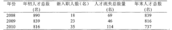 另外,在流失的人才中,大学以上学历的人才流失非常严重。例如太装公司2008年到2010年的流失人才中,学历在大学以上的流失人才占总流失人才的比例较高,平均比例达到了29%。高学历人才是设备制造企业的核心能力,人才的流失给企业带来重大的损失(见表2)。