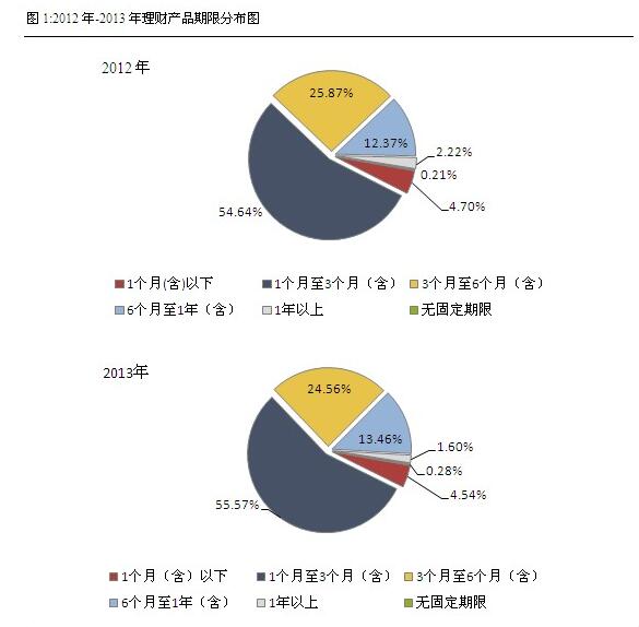 在此阶段银行理财产品的流动性虽有明显提升,但仍以具有封闭期的预期收益型产品为主,超高流动性产品(开放式产品)仍处于萌芽状态。从2012-2013年的产品分布图可以看到,开放式产品的占比没有明显提升,占比不足0.5%。