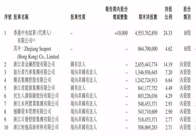 旅行者汽车集团有限公司持股为7.2%,横店集团控股有限公司持股为6.64%。浙江省能源集团有限公司持股为4.49%。