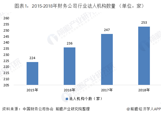 2015-2018年,财务公司行业机构数量和资产负债规模保持良好增长态势。财务公司行业法人机构数量不断上升。截至2018年末,企业集团财务公司全行业法人机构数量为253家,较2017年末增加6家。