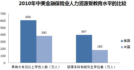 图五:2010年中美金融保险业人力资源受教育水平的比较