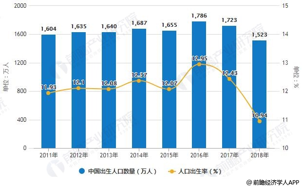 国家统计局数据显示,2018年中国全年出生人口1523万人,比2017年1723万的出生人口下降了200万,由于奶粉消费中,三段奶粉(18~36个月)占到半数,因此这一影响滞后到2019年才开始显现。