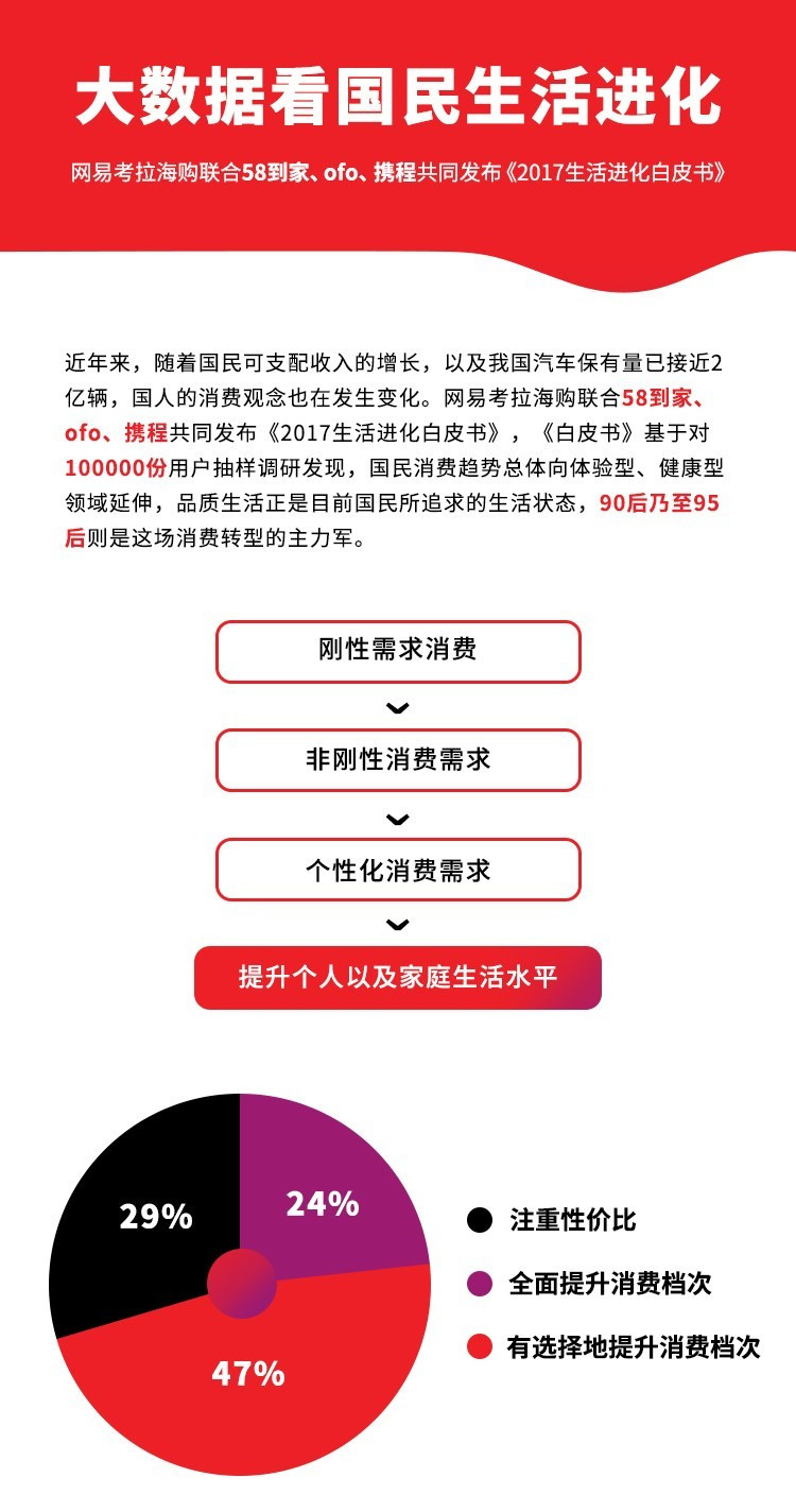 近日,网易考拉海购联合58到家、ofo、携程共同发布《2017生活进化白皮书》。
