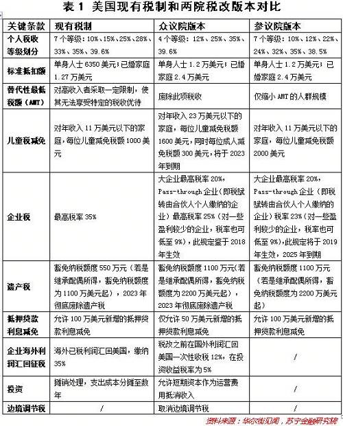 不过,虽然两个方案在“减税”这一大方向上保持了一致,但仍存在诸多细节分歧(参见表1)。因此需要专门成立临时两院联合委员会协商解决,并提出两院均同意的税改法案修改稿,最终由总统签字生效。